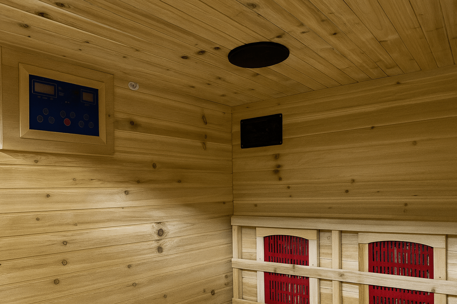 Step out the back door and into calm. The Burlington 2-Person Outdoor Infrared Sauna tucks neatly onto a patio or deck, wrapping you in the warm scent of weather-sealed Canadian hemlock and the steady glow of low-EMF halogen infrared heating. A protective shingled roof, Bluetooth audio, simple digital controls, and a built-in clean-air system make it an easy, all-season ritual—compact outside, spacious enough for two inside.