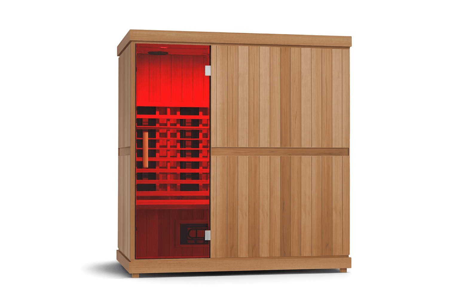 | Finnmark FD-3 Full-Spectrum Infrared Sauna | 3–4 persons | Hybrid: Spectrum Plus™ short-wave + Carbon 360° long-wave panels | Up to 170°F* | Cedar (interior) / Thermal Plus™ Aspen (exterior) | Built-in LCD Wi-Fi touchscreen | Spectrum LED NIR + 192-diode red light panel | Integrated 6″ Hi-Fi (Bluetooth) | 8 mm tempered safety glass | ETL; low-EMF tested |