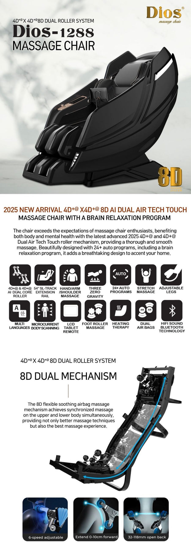 Kahuna Dios-1288 Luxury Massage Chair 8D Dual Roller
