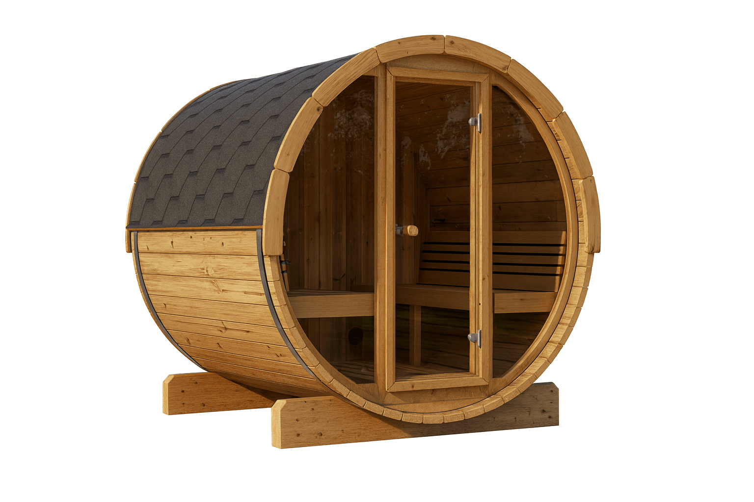 SaunaLife Model E7G Sauna Barrel Glass Front ERGO Series Sauna Barrel