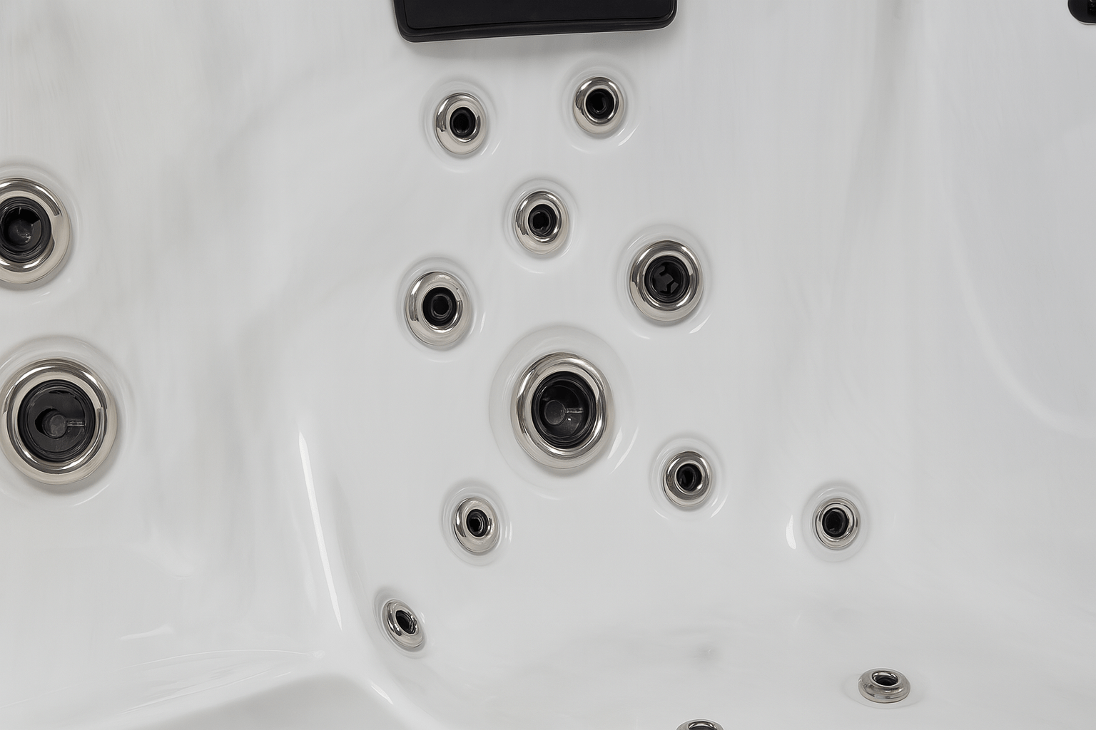 - 60 Stainless Steel Jets: Adjustable multi-zone jets for customizable massage.
