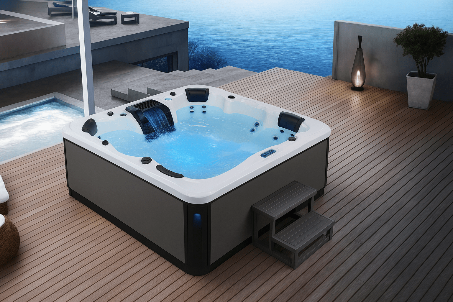 - Dual Lounge Seating: Two full-length loungers for head-to-toe hydrotherapy.