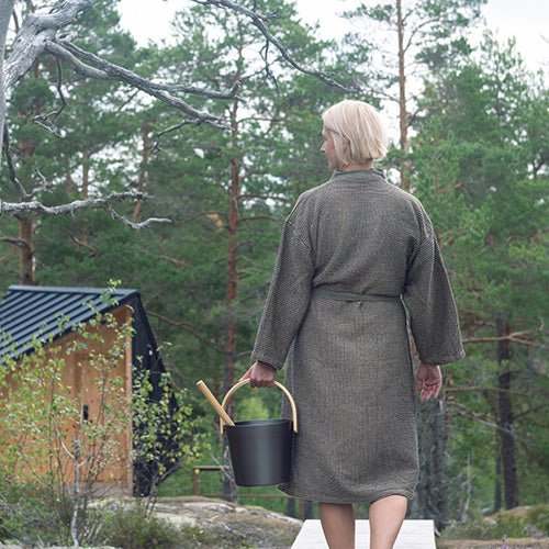 The Rento Curved Handle Sauna Bucket pairs a color-anodized aluminum body with a heat-treated bamboo curved handle for clean Scandinavian styling and everyday durability. With a balanced 5 L capacity and refined finishes, it’s a minimalist accessory that elevates home and boutique spa interiors.