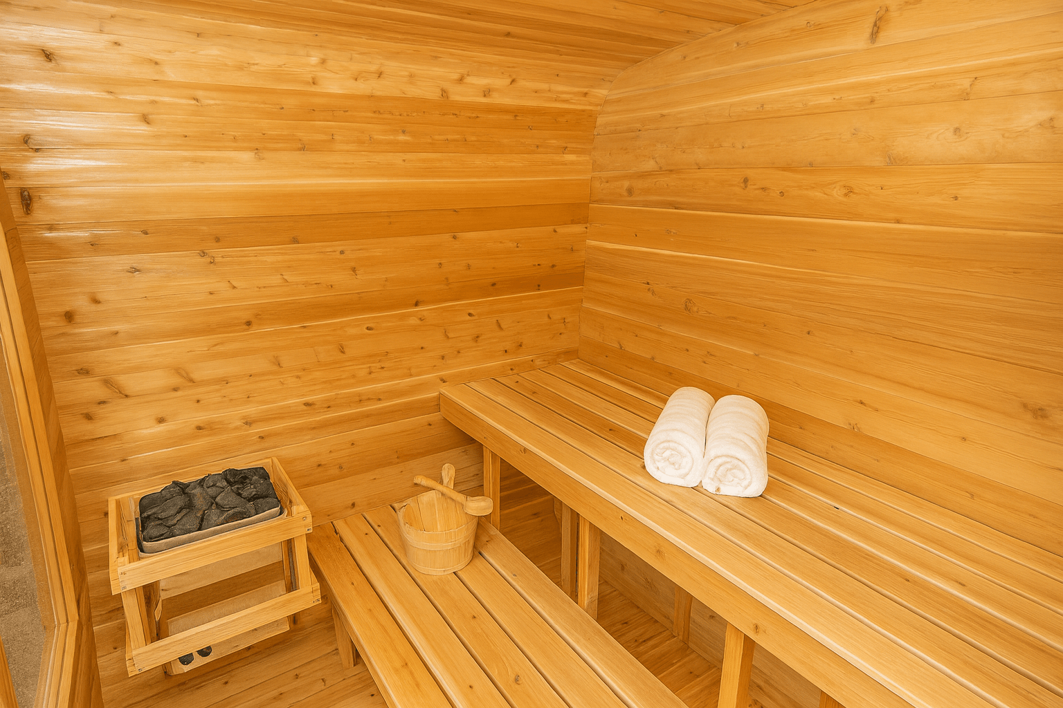The Luna Outdoor Sauna pairs modern architectural lines with the natural warmth of Eastern White Cedar to create a compact, design-forward 2–3 person outdoor sauna. Handcrafted in Canada, Luna’s sleek arched roof sheds rain and snow, while bevel cedar siding boosts weather protection and energy-efficient heat retention for reliable four-season use. Sized for patios, small backyards, garden hideaways, and lakeside retreats, this space-saving backyard sauna delivers fast, even heating and the calming aroma of real cedar. Durable, low-maintenance materials help the cabin age beautifully outdoors, and the layout is optimized for comfortable daily sessions. Compatible with popular electric sauna heaters and stones (sold separately), Luna offers the authentic feel of a traditional Finnish sauna in a smaller footprint. If you’re seeking a premium small outdoor sauna that blends modern design, Canadian craftsmanship, and year-round performance, the Luna is an elegant choice for your home wellness retreat.