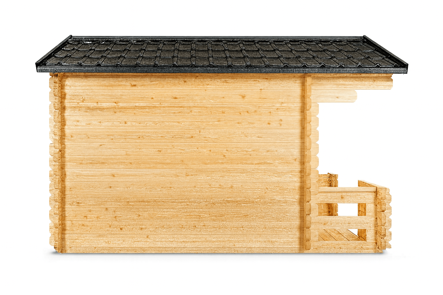 - Pre-cut Eastern White Cedar cabin kit (walls, roof structure, porch)